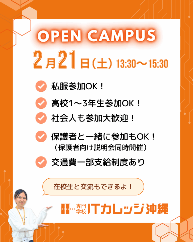 ![インターネットとゲーム 専門学校ITカレッジ沖縄 [アイカレ]](/2020/wp-content/themes/it-college/img/logo.png)